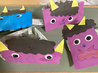 それぞれのお面を作成して、節分行事に備えます☺
